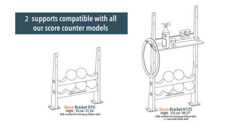 These supports are compatible with all our scoreboards and other accessories. It’s therefore possible to upgrade from the basic “two legs” to an “H70 Bracket” or “H125 Bracket” over time or as your budget allows.