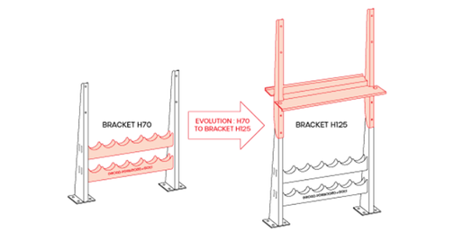 Starting with the basic “two legs version” to an “H70 bracket” or an “H125 bracket” model.